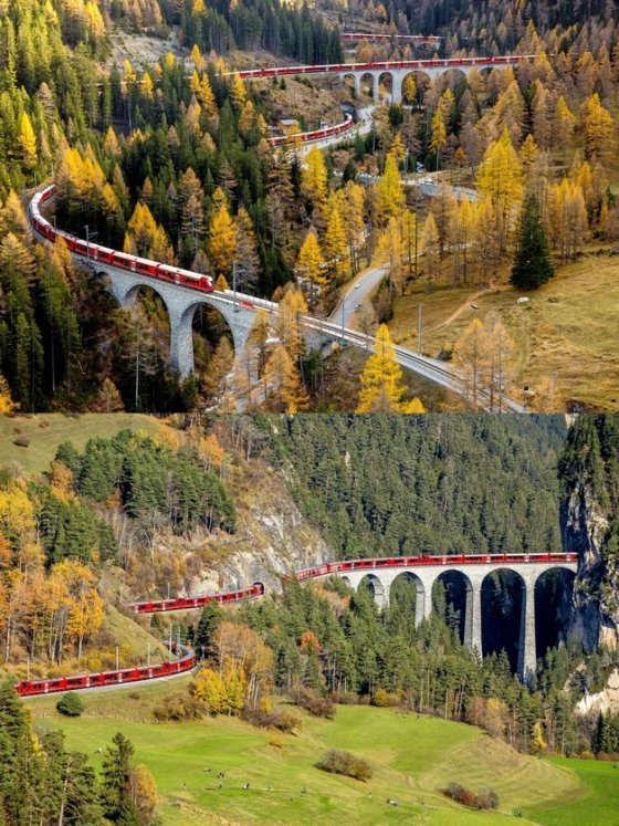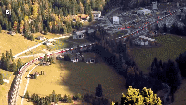 이날 기차는 스위스 동부 프레다에서 알바네우를 잇는 유네스코 세계 문화유산 알불라라인 25㎞를 1시간에 걸쳐 운행했다. 알불라라인은 끝없는 곡선길과 가파른 절벽 지형으로 유명하다.