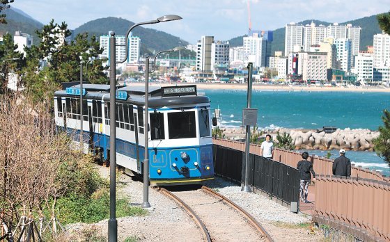 부산 동해남부선의 옛 철도시설을 재개발해 해운대와 송정을 오가며 인기를 끌고 있는 해변철도 ‘해운대 블루라인 파크’. 부산=뉴스1
