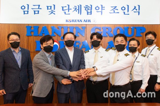 대한항공은 4일 서울시 강서구 공항동 소재 본사에서 2022년 조종사노조 임금·단체협상(임단협) 조인식을 가졌다. 우기홍 대한항공 사장과 남진국 대한항공조종사노동조합(조종사노조) 위원장 등 주요 관계자들이 참석했다. 조인식에서는 안전운항체제를 공고히 하기 위한 결의도 다졌다.