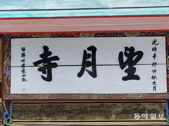 주지 스님 집무실 등 요사채가 있는 건물 무위당(無爲堂)에 한자로 망월사(望月寺) 라 쓴 현판이 걸려있다. 현판 내용이 특이하다. ‘주한사자원세개(駐韓使者袁世凱) 광서신묘중추지월(光緖辛卯仲秋之月)’이 눈에 들어온다. 광서는 청나라 11대 황제 광서제를 말하는 연호로, 마지막 황제 푸이(12대)의 바로 전 기울어가던 청나라의 황제다. 1891년 가을에 원세개(위안스카이)가 썼다는 뜻이다.