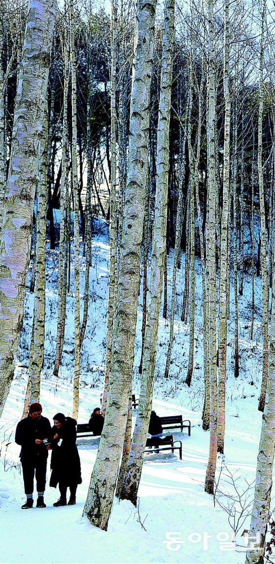 하얀 눈이 쌓인 강원 인제군 원대리 자작나무 숲.자작나무는 북유럽과 시베리아, 우리나라 함경도, 일본 홋카이도 등 추운 지방에서 자생한다. 원대리 자작나무숲은 인제국유림관리소가 산불 확산을 막기 위해 1974∼1995년 41만 평에 69만 그루를 심어 인공적으로 조성한 것이다.