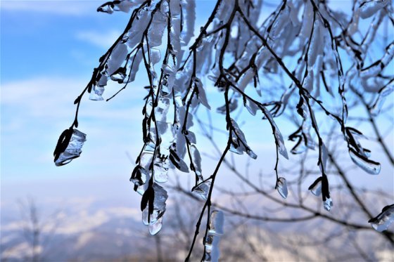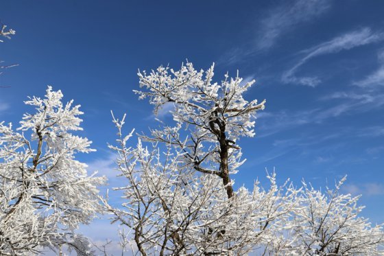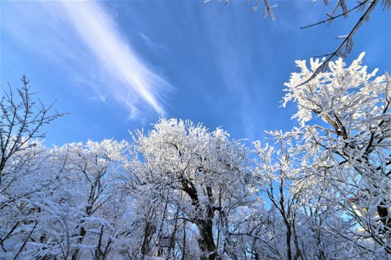 눈 덮인 겨울숲으로 가자. 시베리아에서 불어오는 송곳같은 칼바람에도 꼿꼿이 서서 버텨내는 겨울나무에는 눈꽃, 얼음꽃, 서리꽃이 피어난다. 상고대 사이로 언뜻언뜻 비치는 하늘은 바다처럼 푸르다.