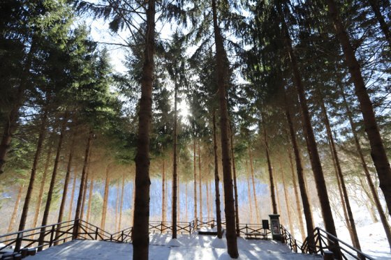이 곳은 1960년대 화전민들이 이주한 터에 심은 독일가문비나무가 국내 최대 군락지를 이루고 있는 곳이다. 겨울에도 푸르름을 잃지 않는 쭉쭉 뻗은 독일가문비나무 숲에서는 피톤치드가 뿜어져 나온다. 발왕산의 기(氣)를 느끼며 걷다보면 호흡이 맑아지고 머리도 상쾌해진다.