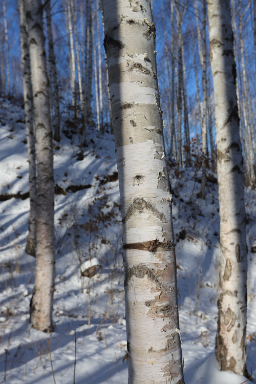 자작나무는 영하 20~30도의 혹한을 그리 두꺼워 보이지 않는 새하얀 나무 껍질 하나로 버틴다. 자작나무의 껍질을 손으로 만져보니 의외로 부드러웠다. 하얀 가루가 묻어날 것 같은데, 아무 것도 묻어나지 않았다. 자작나무는 보온을 위해 종이처럼 얇은 껍질을 겹겹이 입고 있다. 겨울 등산을 할 때 두꺼운 옷 한 벌보다는 얇은 옷 여러벌을 겹쳐 입는 것이 좋다는 법을 자작나무도 아는 것 같다. 자작나무는 얇은 껍질 사이에 풍부한 기름성분까지 넣어 나무의 근원인 부름켜(형성층)가 얼지 않도록 한다.
