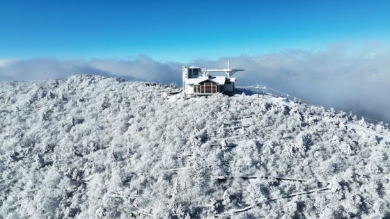 발왕산 정상 상고대가 핀 나무발왕산 천년주목숲길