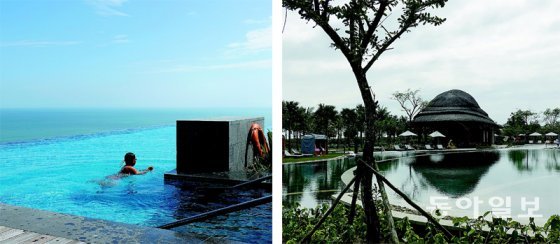 복합리조트인 호이아나 리조트&골프 내의 인피니트풀(왼쪽)과 야외 수영장.