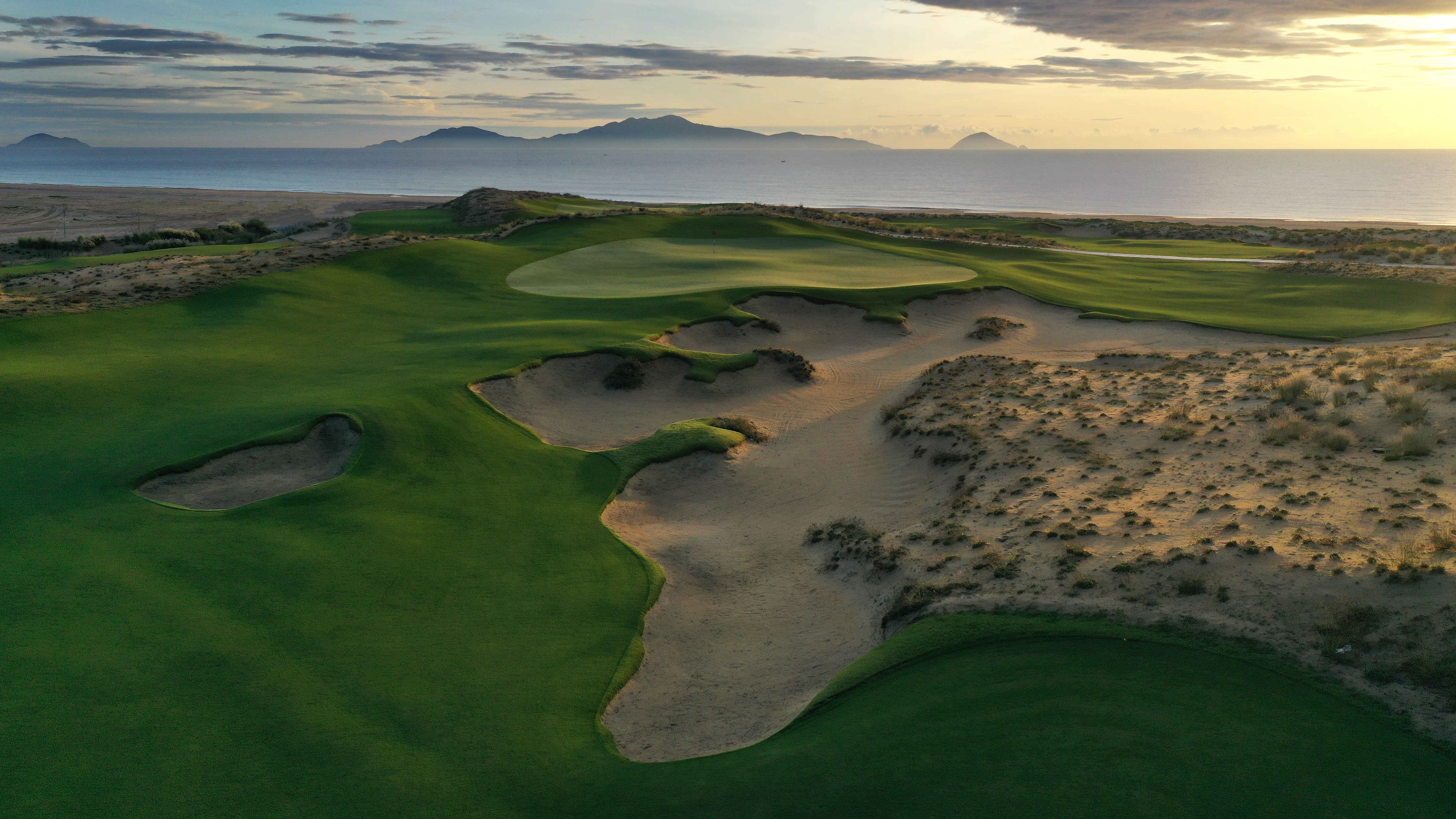 해변의 모래를 이용해 친환경적 골프 코스를 조성해놓은 ‘호이아나 쇼어스 골프 클럼’. 바다 멀리로 유네스크 세계생물권 보존지역인 참 아일랜드가 보인다. 호이아나 리조트& 골프 사진 제공