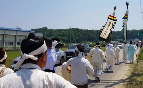 진천 용모리 농료 시연.(진천군 제공) / 뉴스1충북 진천군은 지난해 문화재청에서 주관한 지역 무형유산 보호지원 사업에 최종 선정돼 사업비 2억원(국비 1억원, 지방비 1억원)을 확보했다고 13일 밝혔다.