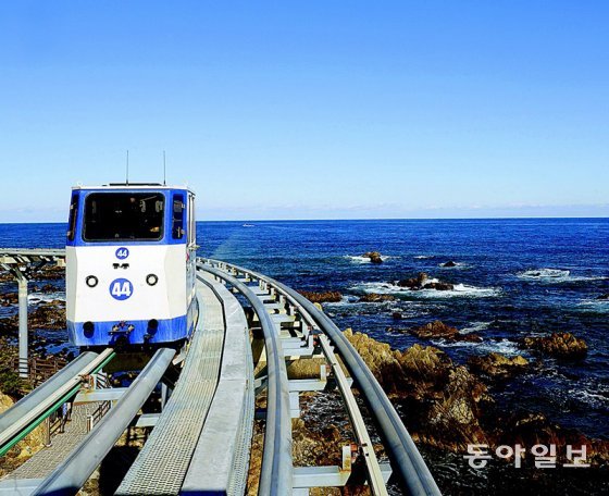해안선을 따라 10m 높이로 공중에 설치된 죽변 해안 스카이레일.