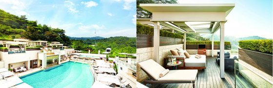 어번 아일랜드 전경(왼쪽)과 카바나.서울신라호텔의 야외 온수풀 ‘어번 아일랜드’가 예년보다 일찍 3월 11일 오픈한다. 최고 32~34˚C로 운영되는 온수풀을 비롯해 온열선이 설치된 선 베드와 히팅 존(근적외선 온열 시스템)을 갖추고 있어, 초봄에도 따뜻한 야외 수영과 휴식을 즐길 수 있다. 또한 계절 따라 달라지는 남산의 정취를 느낄 수 있어 늦가을까지 인기가 높다. 시즌 별로 플로팅 요가, 문라이트 시네마 등이 진행되기도 한다.