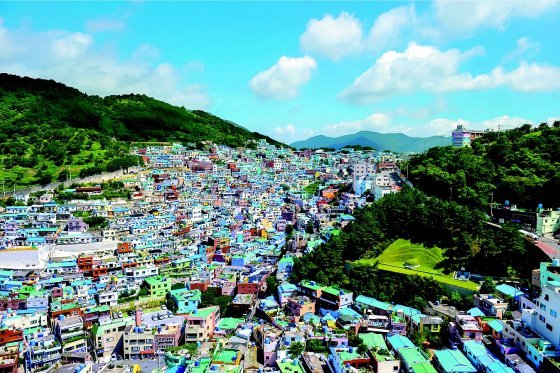 2010년 이후 정부의 ‘마을예술 프로젝트 공모사업’에 당선된 젊은 예술가들이 창작공간을 만들어 정착하면서 곳곳에 벽화와 예술작품이 설치됐다. 파스텔 색조의 지붕과 벽이 예술작품과 어우러지면서 마을은 ‘지붕 없는 미술관’으로 거듭났다. 감천문화마을은 2013년 미국 CNN방송에 ‘아시아에서 가장 예술적인 마을’로 소개되기도 했다. 2016년 문화체육관광부가 주최한 ‘대한민국 공간문화대상’에서 대통령상도 수상했다. 코로나19를 거치며 지난해 100만 명 이하로 떨어졌던 방문객 수는 올 초부터 다시 늘고 있다.