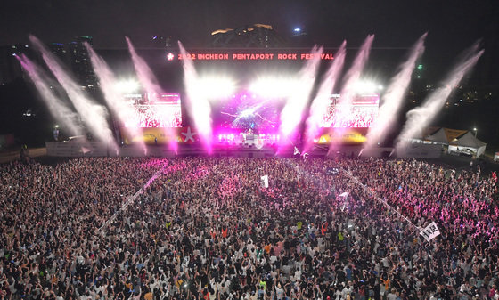 인천 연수구 송도달빛축제공원에서 열린 ‘2022 인천 펜타포트 락 페스티벌’에서 관객들이 공연을 즐기고 있다. (인천시 제공) 2022.8.6지난해 국내 지역축제 방문객 수가 팬데믹 이후 약 20% 증가한 것으로 나타났다.