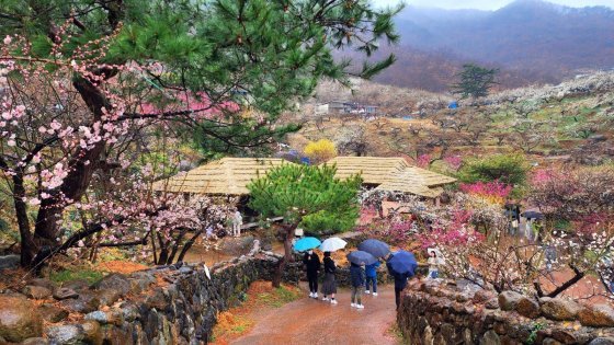 전남 광양시 매화마을 전경. 신종 코로나바이러스 감염증(코로나19)으로 중단됐던 광양매화축제는 10일부터 19일까지 열린다. 광양=뉴스1.구례 산수유꽃축제도 이번달 11일부터 시작된다. 구례군청 관계자는 “지난해보다 5일 정도 꽃 소식이 빠르다”며 벌써 개화가 시작됐다고 설명했다.