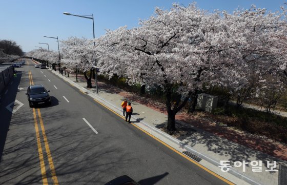 2020년 4월 신종 코로나바이러스 감염증(코로나19) 여파로 여의도 벚꽃축제가 취소됐을 당시 서울 여의도 국회 뒷길이 한산한 모습. 양회성 기자 yohan@donga.com여의도 벚꽃축제를 다시 맞이한 시민들의 기대감도 커지고 있다. 서울 금천구에 사는 김혜연 씨(28·여)는 “코로나19 전까진 매년 여의도 벚꽃 축제를 찾았다”라며 “마침 올해 취업에 성공했는데 벚꽃 축제까지 열린다고 하니 선물 받는 마음으로 가서 즐기려고 한다”고 말했다.