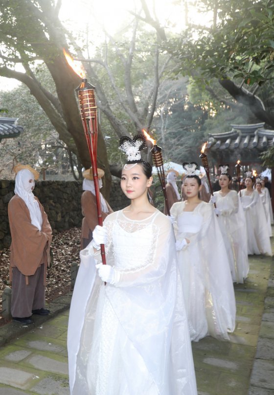 제례를 통해 채화된 불씨는 봉송 퍼레이드를 거쳐 강병삼 제주시장에 의해 제주시청에 안치됐다.
