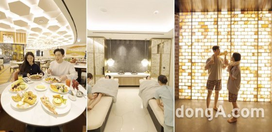전 세계 하얏트 호텔 중 최대 규모를 갖춘 ‘그랜드클럽’ 2인 혜택도 누릴 수 있도록 했다. 시간대별 서비스와 함께 6층 프라이빗 체크인·체크아웃 서비스를 포함한다. ‘로즈베이 스파’에서는 60분 마사지(2인)와 찜질 스파를 누릴 수 있고 관광명소로 떠오른 사계절 온수풀 ‘야외 풀데크’에서 오전 7시부터 오후 11시까지 수영을 즐길 수 있다.