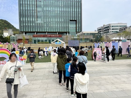 제53회 지구의 날을 맞은 22일 강원 춘천시청 광장에 마련된 ‘2023 기후살리기 춘천시민의 날’ 행사에서 시민들이 부스를 둘러보고 있다. 2023.4.22/뉴스1 강원지역 명산에도 1만명에 육박하는 탐방객들이 찾아 미세먼지를 피해 봄 산행을 즐겼다.