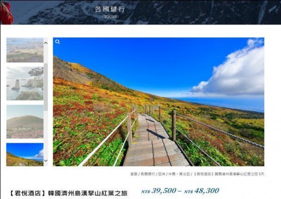 제주 트래킹 상품을 소개한 대만 현지 여행사 홈페이지(제주관광공사 제공)제주의 트래킹 여행상품이 대만에서 호응을 얻고 있다.