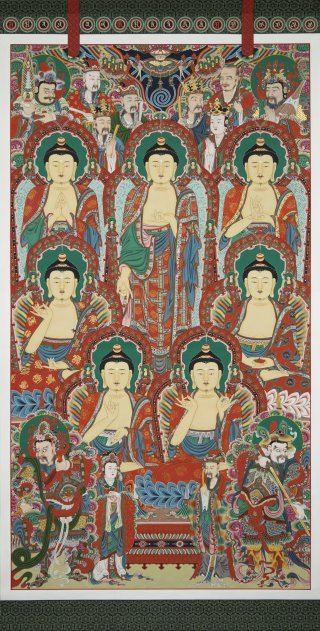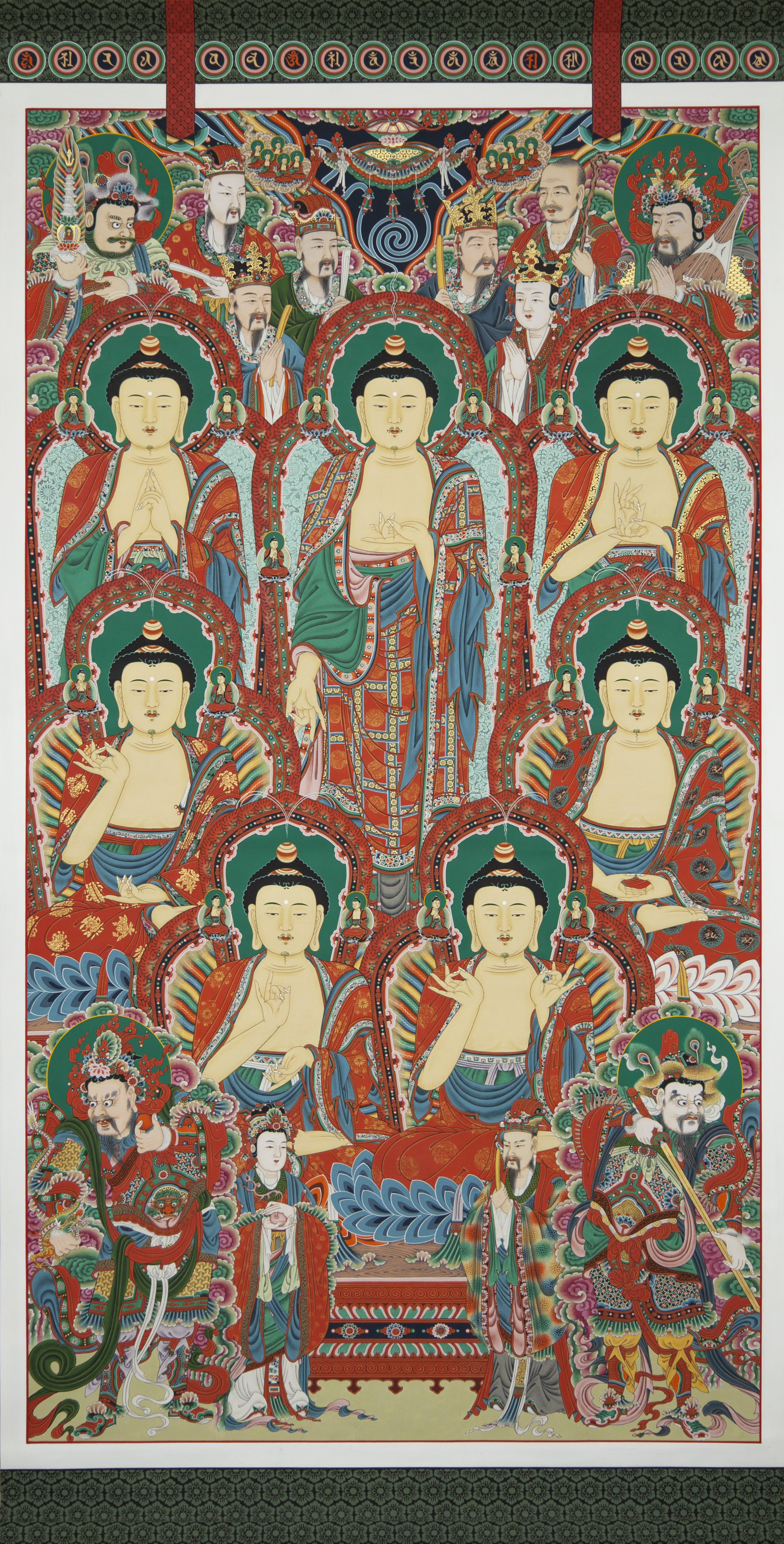 마침 칠불사에서는 7일 오후 1시 ‘칠불괘불탱화’ 점안식이 열릴 예정이다. ‘일곱 부처님 나투시다’라는 이름의 칠불괘불탱화 점안식은 지리산 7불(가야 7왕자)이 역사상 처음으로 모셔지는 행사다. 3년여에 걸쳐 완성된 탱화에는 가야의 건국 스토리가 고스란히 녹아 있다. ‘지리산 칠불’이 중앙에 묘사돼 있고, 작품 상단 오른쪽에는 가야 건국주인 김수로왕과 허왕후, 장유선사(허왕후의 오빠)가 있고, 왼쪽에는 가야 제2대 왕인 거등태자 및 허씨 성을 이어받은 2명의 왕자가 묘사돼 있다. 그러니까 수로왕과 허왕후 사이에 난 가족 그림인 셈이다.