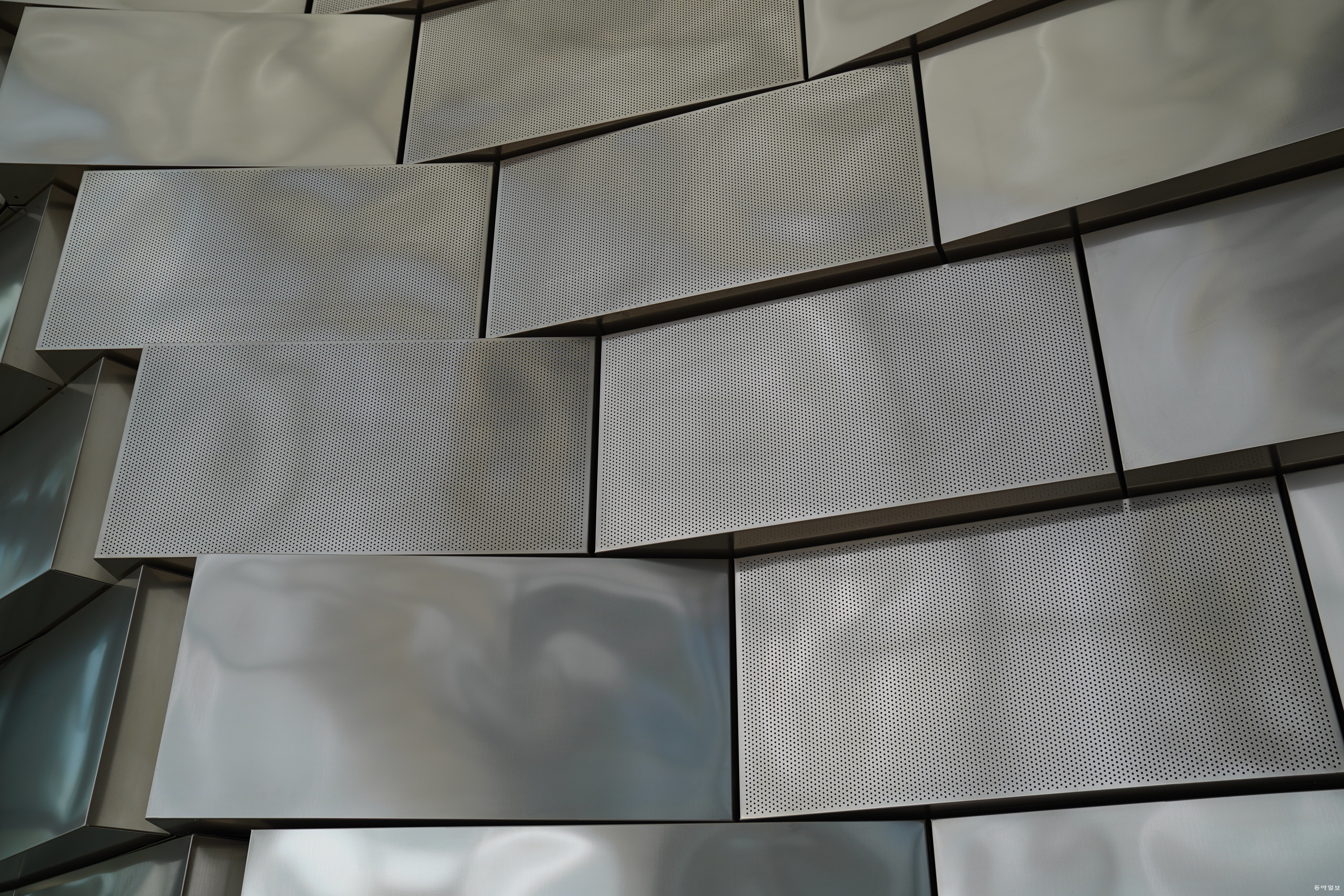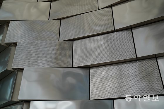 관람객들은 매표소와 로비가 있는 드럼의 1층 출입구로 들어가 외부를 장식하고 있는 은빛 패널을 직접 보고 만져볼 수 있다. 실제 가까이서 보니 알루미늄 패널의 표면은 매끈하지 않고, 미세한 구멍이 수백 수천개씩 뚫려 있는 형태였다.
