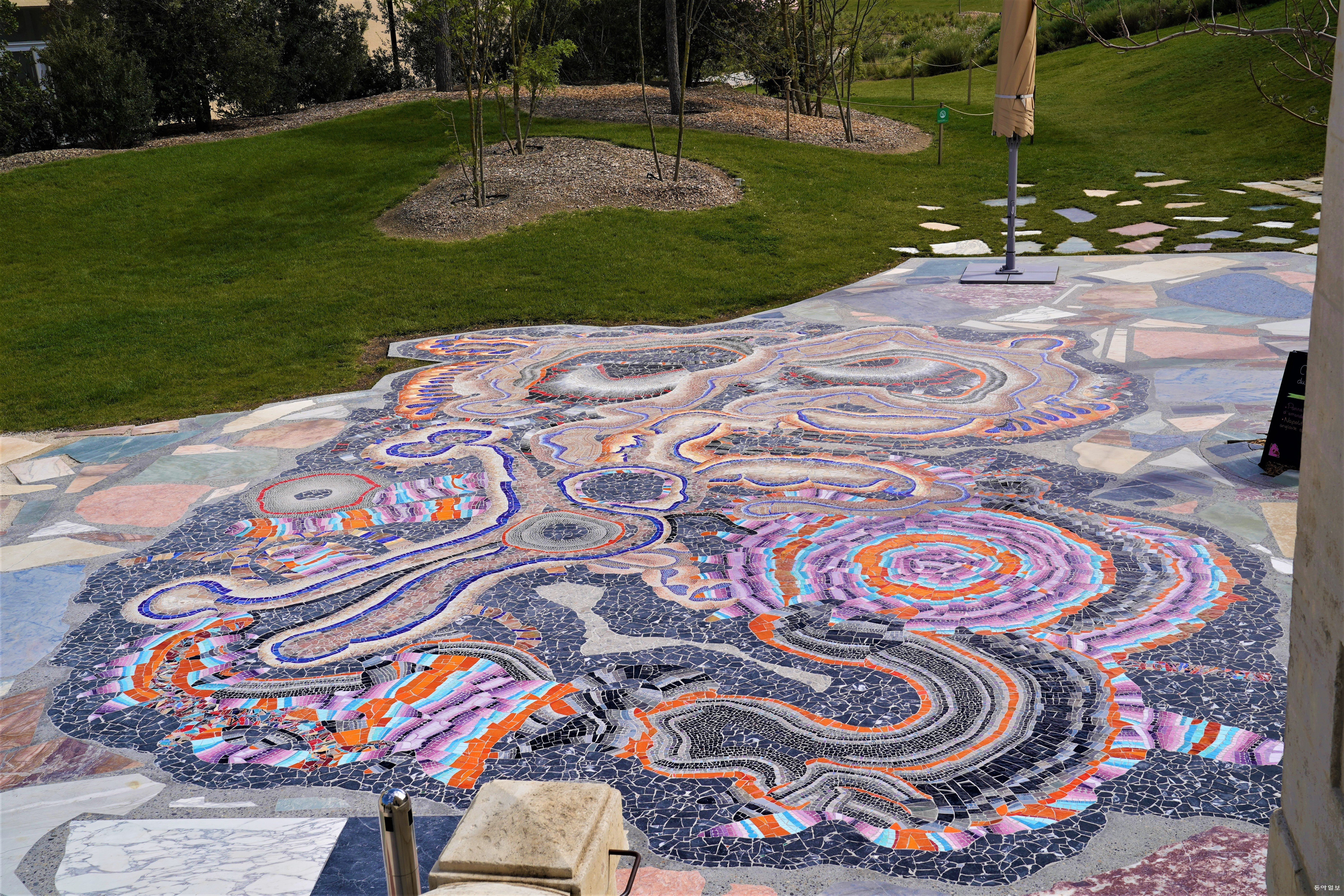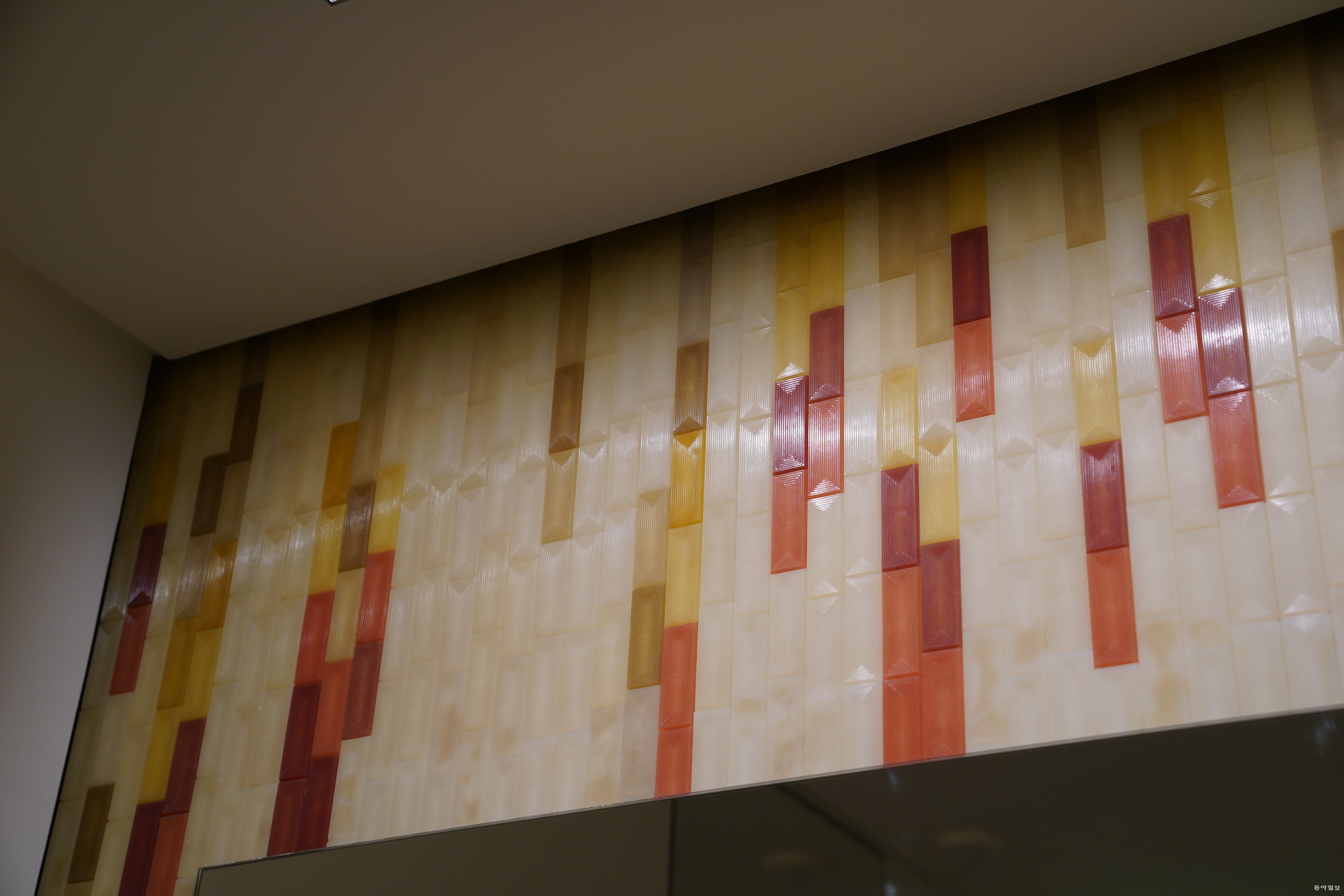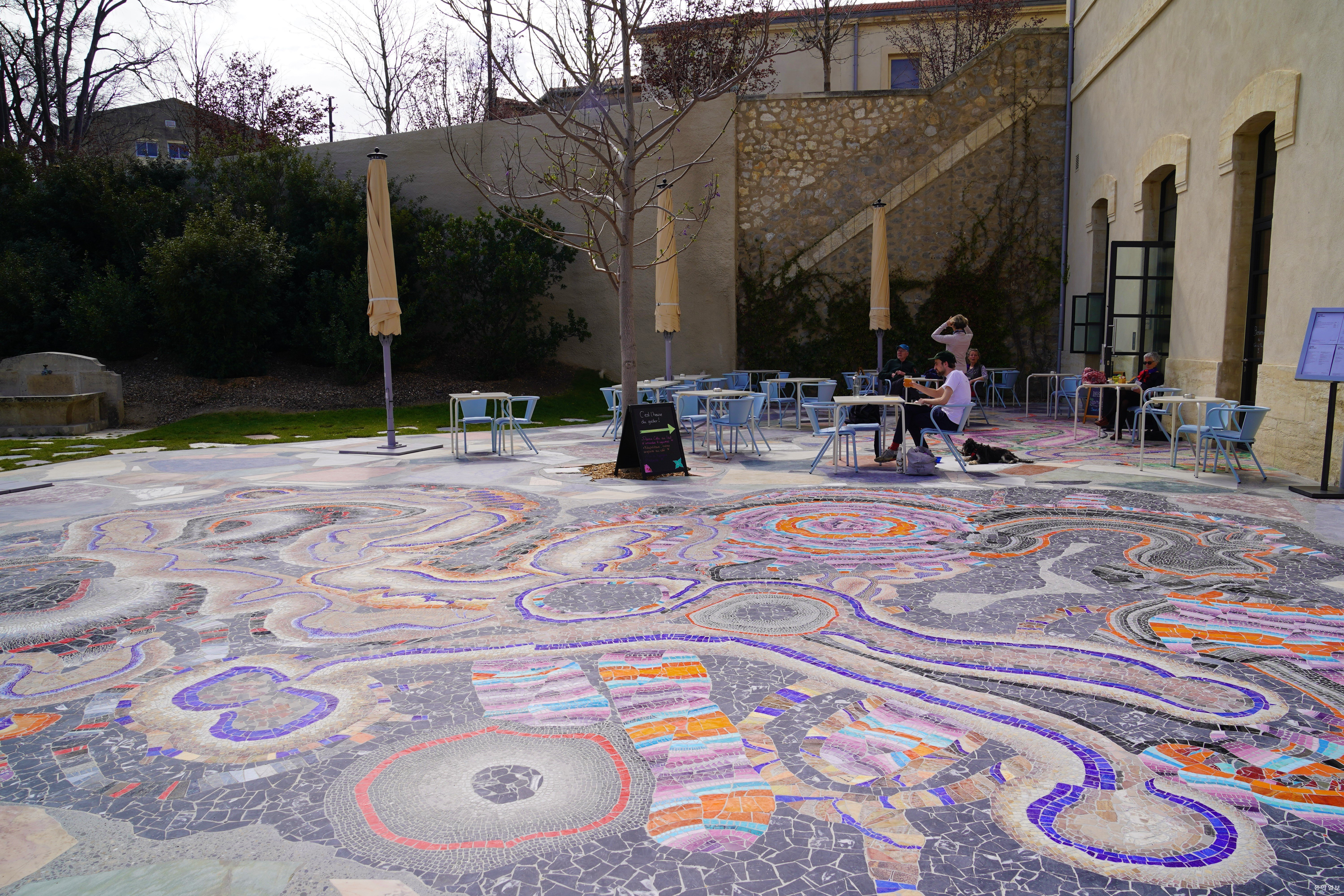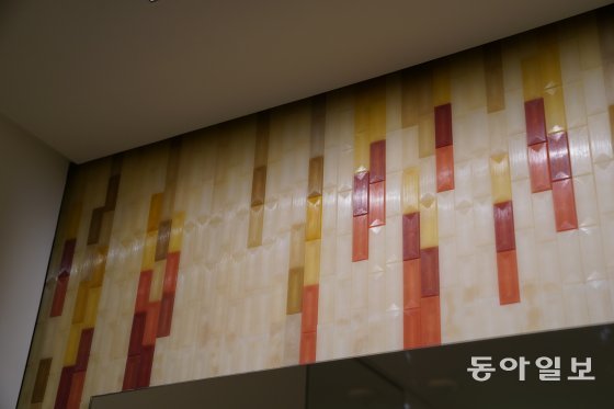 엘리베이터 옆 벽면에는 론강 주변 카마르그 습지에서 생산되는 소금 결정체를 타일로 만들어 붙였고, 화장실 거울 위에는 지중해 바다에서 채취한 해초에서 추출한 성분으로 무늬를 새겨넣은 타일로 장식돼 있다.