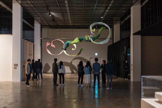 제14회 광주비엔날레를 찾은 관람객들이 설치된 미술품을 살펴보고 있다. (재)광주비엔날레 제공