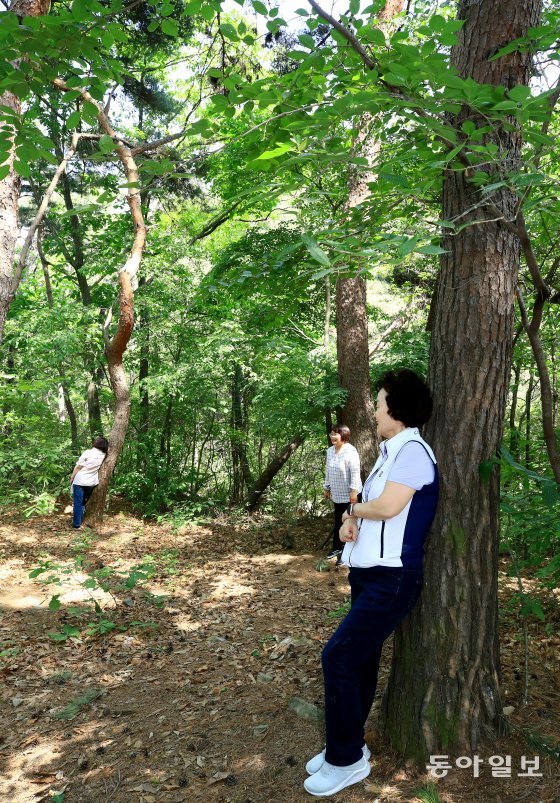 17일 서울 관악산 치유의 숲길. 산림치유지도사는 이같이 말한 후 참가자들을 나무 한 그루 앞에 한 명씩 서게 했다. 참가자들은 아무 말 없이 나무를 꼭 끌어안고 토닥이거나 쓰다듬었다. 햇살 사이로 시원한 바람이 불어 힐링을 도왔다. 나무에 기대 눈물을 훔치던 임옥순 씨(59)는 “최근 힘든 일이 너무 많았는데 나무가 ‘울어도 된다’고 말하는 것 같았다. 일상에서 벗어나서 오롯이 나를 위한 시간을 가질 수 있어 좋았다”고 말했다.