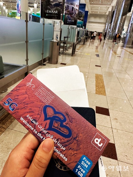 현지 연락을 위해 유심(USIM)을 걱정하는 여행객이 있을 수 있겠다. 환승 여행객을 위한 서비스가 우수한 두바이답게 입국심사를 마친 여행객에겐 24시간용 1GB 용량의 무료 5G 유심을 제공(2023년 4월 기준)한다.