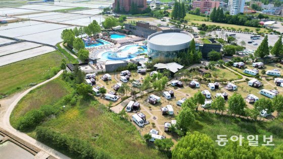 특히 이곳에서는 야외 캠핑장의 카라반에서 숙박하는 체험을 할 수 있다. 스탠더드 30대, 디럭스 20대 등 총 50대의 카라반이 준비돼 있다. 카라반마다 더블침대와 아이들을 위한 2층 벙커침대, TV, 조리시설, 화장실, 에어컨 등을 갖추고 있다. 낮에는 아이들과 함께 온천수 워터파크에서 놀다가 저녁 무렵에는 카라반 앞 야외 테이블에서 바비큐를 즐기는 등 글램핑을 만끽할 수 있다.