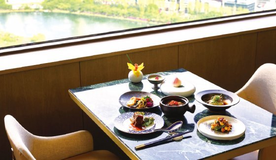 롯데호텔 서울과 롯데호텔 월드에서 내놓는 여름 중식 ‘수화수채(受和受采)’ 코스. 정통 사천요리, 광동요리 등 롯데호텔 중식당 인기 메뉴 7코스로 구성돼 있다.전채요리는 ‘미나리 육회 양장피’로 정통 사천요리의 풍미를 내는 화조유를 곁들였다. 해삼, 전복, 자연송이, 부레 등을 넣은 보양식 ‘고법 불도장’, 매콤한 광동요리 ‘향라해삼’도 맛볼 수 있다. ‘간장소스 가오리 날개찜’과 광동식 갈비찜 ‘지존 갈비’도 즐길 수 있다. 면류와 볶음밥 등 식사에 이어 코스의 마지막은 도림(桃林, 복숭아나무 숲)을 표현한 앙증맞은 ‘복숭아 케이크’가 달콤하게 장식한다. 7월 31일까지.