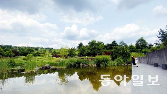 9일 군위군 부계면 사유원을 찾은 한 가족이 풍설기천년 풍광을 감상하고 있다. 모과나무로 둘러싸인 이곳은 이국적인 풍경을 자랑한다. 장영훈 기자 jang@donga.com“군위가 이렇게 가까운 줄 몰랐어요. 대구에 편입되면 더 자주 가야겠어요.”