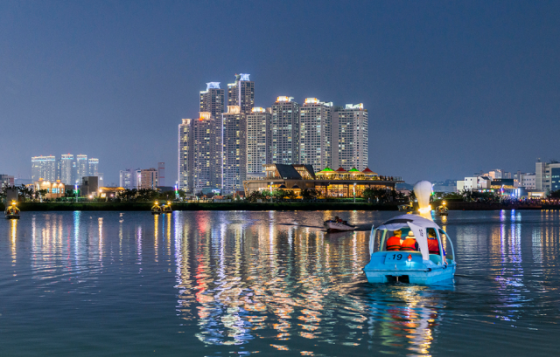 대구 수성구 수성못의 야경. 밤에 오리배 위에 올라 감상하는 야경이 일품이다. 대구 수성구 제공