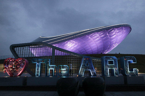 대구 달성군 강정보에 설치된 디아크에 형형색색의 조명이 밝혀져 화려한 야경을 뽐내고 있다. 대구시 제공