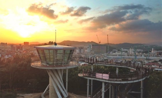 전망대에서 내려다보는 도심 야경은 그야말로 압권이다. 해가 뉘엿뉘엿 저물어 갈 때는 따스한 노을을 바라보며 낭만을 느낄 수 있고 하늘이 완전히 까맣게 물들었을 때는 마치 별들이 대지에 내려앉은 듯한 모습의 환상적인 야경을 감상할 수 있다. 앞산전망대까지는 주차장에서 30, 40분이면 오를 수 있어 부담도 적다. 최근에는 대구시가 앞산전망대에 확장현실(XR) 망원경 2대를 설치해 색다른 즐길 거리가 추가됐다. 산 아래 우뚝 서 있는 앞산 해넘이 전망대는 노을 뷰 맛집으로 통한다. 남구가 대명동 빨래터공원 앞에 세운 이 전망대는 13m 높이로 288m 길이의 완만한 경사로를 통해 올라갈 수 있다. 일몰 시간대 전망대 정상 지점에서 서쪽을 바라보면 대구에서 가장 아름다운 노을을 감상할 수 있다. 해가 완전히 지면 앞산전망대 못지않은 환상적인 도심 야경이 발아래로 펼쳐진다.