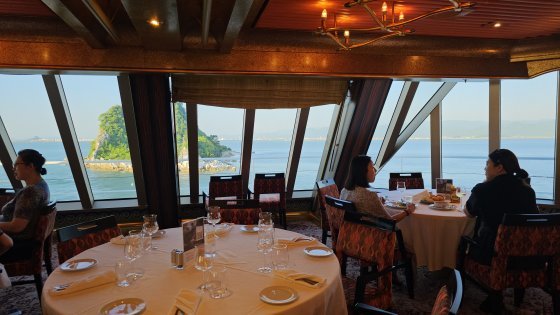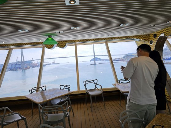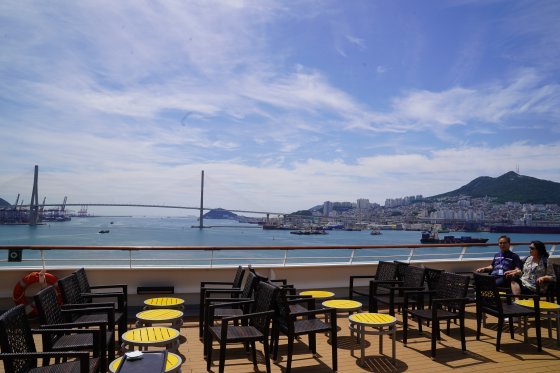선내에서 바라본 부산항대교.코로나19로 크루즈 운항이 중단된지 3년8개월여 만에 다시 시작된 국내 항구에서 출발하는 전세 크루즈선 여행이었다. 부산항에서 출발한 이 배는 일본 규슈(九州) 지방의 나가사키(長崎)와 구마모토(熊本)에서 기항지 여행을 하고 돌아오는 3박4일짜리 코스였다.