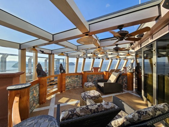 수영장 주변의 바. 밤에는 파티를 하거나 영화를 상영한다.●힐링의 크루즈 여행