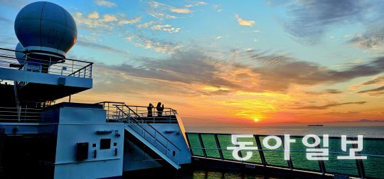부산항에서 출발해 일본 규슈 지방을 여행하는 크루즈선인 코스타 세레나호의 선상에서 감상하는 대한해협의 일출. 갑판에는 조깅코스도 있어서 떠오르는 아침 해를 배경으로 조깅을 즐기는 사람들도 있다.크루즈 여행의 계절이 돌아왔다. 코로나19로 발이 묶였던 국내 크루즈 여행이 3년 8개월 만에 부산항, 속초항 등지에서 본격적으로 시작됐다. 그런가 하면 홍해와 지중해 등 해외 크루즈 여행 상품도 본격적으로 손님을 모집하고 있다. 크루즈선은 배라기보다는 바다 위에 떠다니는 거대한 리조트다. 숙식은 물론이고 화려한 이벤트가 가득한 크루즈 여행은 가족과 친지, 동창과 함께라면 더욱 즐거운 단체 여행의 꽃이다.