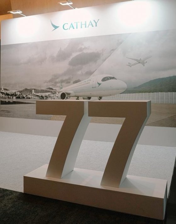 26일 서울 중구 반얀트리호텔에 설치된 캐세이퍼시픽항공 77주년 기념 조형물. 캐세이퍼시픽 제공
