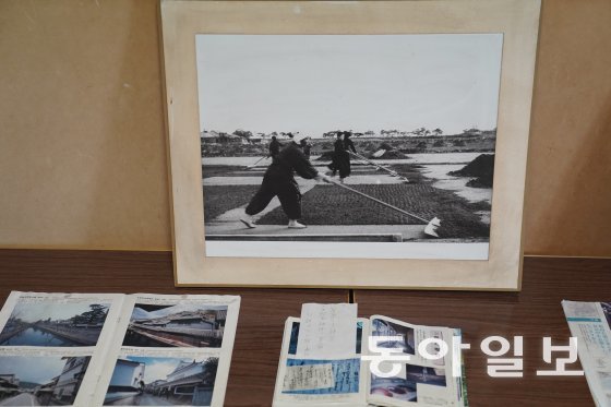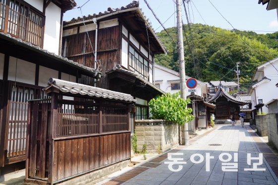 다케하라 염전이 있던 시절의 사진.다케하라는 에도~메이지 시대의 옛 건축물들을 잘 보존해 과거로 거슬러 올라가는 시간 여행지로 꾸몄다. ‘다케하라 미치나미 보존지구’는 식당과 커피숍, 기념품 가게, 서예 강습교실, 도예공방, 양조장 등으로 활용되는 시골 주택을 천천히 둘러볼 수 있는 고즈넉한 마을이다.