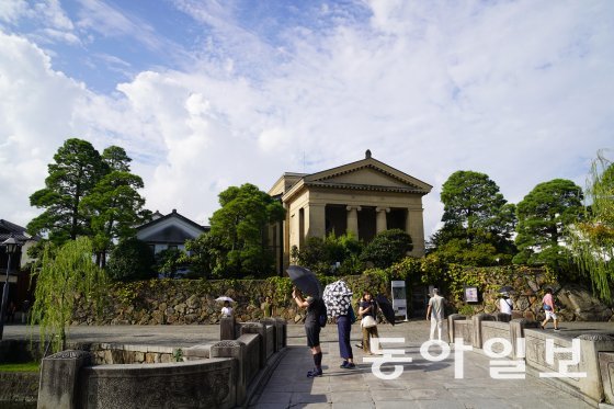 강변을 걷다보면 오하라(大原) 미술관이 보인다. 전통가옥 사이에 그리스 신전처럼 이오니아 양식으로 지어진 석조건물이 우뚝 솟아 있다. 1930년에 문을 연 일본 최초의 근대미술관이자 사립미술관이다.