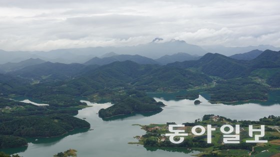 비봉산 정상에서 내려다본 청풍호의 절경. 악어처럼 생겼다고 해서 악어섬(가운데)이라고 불리는 산자락과 함께 이국적 호반 마을 풍경이 눈길을 사로잡는다.청풍호 절경을 즐기는 또 다른 방법은 산과 청풍호를 잇는 총 58km(1∼7코스)의 산책길로 조성된 자드락길을 걷는 것이다. 자드락길은 ‘산기슭 비탈진 땅에 난 좁은 길’을 일컫는 말이다. 이 중 자드락길 6코스인 괴곡성벽길의 청풍호 전망대에서는 또 다른 경관미를 만날 수 있다. 나선형 구조인 이곳 백봉전망대에 오르면 막힌 곳 없이 펼쳐지는 시원한 전망이 압권이다. 물안개나 낮은 구름이 산 아래로 깔려 전망이 흐려져도 괜찮다. 그 자체로 신비한 선경 세계에 들어선 듯한 몽환적인 분위기가 연출되기 때문이다.