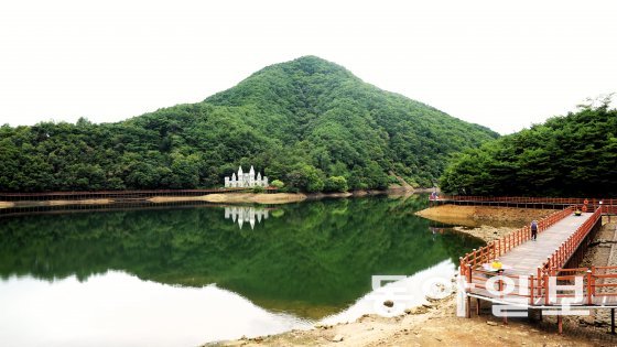 ‘제2의 의림지’로 불리는 제천 비룡담 저수지. 나무 덱으로 조성한 ‘물안개길’을 걷다 보면 인공의 성 구조물 등 아름다운 포토존을 만나게 된다.한방 치유 숲길 중 물안개길은 비룡담에서 출발해 한방 생태숲을 돌아 다시 비룡담으로 돌아오는 덱길 코스다. 보행 난도가 최저 수준으로 장애인, 노인, 임산부 등도 편하게 산책할 수 있다. 이 코스는 인공으로 만든 성 구조물 포토존으로도 유명하다. 낮에는 진초록 물빛의 비룡담에 반영(反影)으로 비치는 성 모습도 아름답거니와 밤엔 형형색색의 불빛으로 이국적인 모습으로 변한다. ‘비룡’이란 이름처럼 승천하는 용이 불길을 뿜어내는 듯한 분위기다.