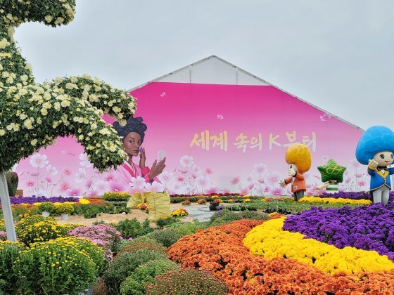 2023 오송 화장품뷰티산업 엑스포 전시관을 수놓은 작가 비단(본명 김백중)의 작품. K뷰티의 세계화를 표현했다. 충북도 제공아름다움의 ‘비법’을 체험할 수 있는 행사가 충북 청주시에서 잇따라 펼쳐진다. K뷰티의 우수성을 한눈에 볼 수 있는 ‘오송 화장품뷰티산업 엑스포’와 세종대왕의 피부병을 치료한 초정약수의 효험을 느낄 수 있는 ‘세종대왕과 초정약수축제’다.