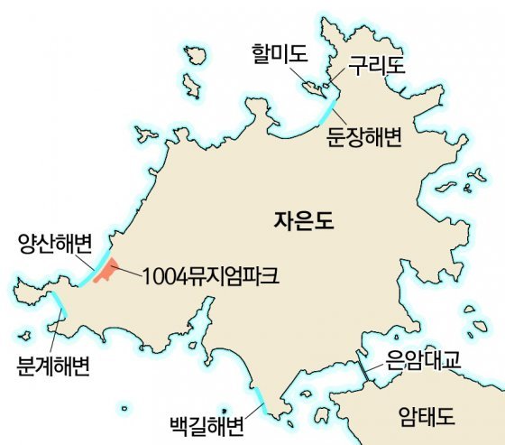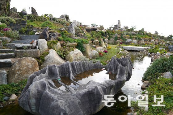 전남 신안군 자은도의 해송숲이 우거진 양산해변에 들어선 1004뮤지엄파크는 수석미술관과 세계조개박물관, 자생식물원 등을 한꺼번에 둘러볼 수 있는 해양복합문화단지다. 사진은 기암괴석과 연못으로 꾸며진 수석정원.《전남 신안군 자은도는 황금빛 모래와 해송숲이 아름다운 섬이다. 섬에는 바람이 불고, 거친 파도가 몰려온다. 바람은 모래언덕을 만들어내고, 파도는 기암괴석을 만들어낸다.