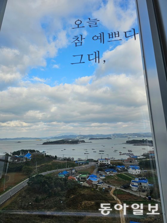 1층에서 엘리베이터를 타니 22층 전망대까지 직행한다. 전망대 창밖을 내다보는 사람들은 “우와!” 하는 감탄사를 내뿜게 된다. 360도 방향으로 섬과 바다의 풍경을 바라볼 수 있기 때문이다. 서해의 낙조와 섬, 원산안면대교의 위용이 한눈에 내려다보인다. 그리고 바다에 점점이 떠 있는 배들과 논과 밭 풍경이 마음을 차분하게 만든다. 뉘엿뉘엿 지는 태양의 각도가 달라질 때마다, 바람에 구름이 흩어질 때마다, 반짝이는 윤슬은 먼바다로 갔다가 가까이 다가왔다가 천변만화(千變萬化)한다.