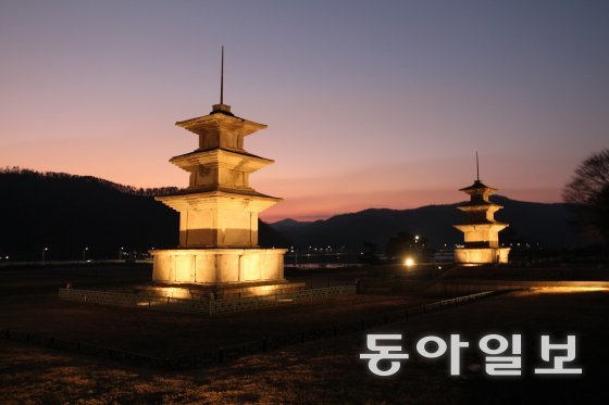 감포 앞바다에 연결된 대종천변에는 감은사지가 있다. 문무왕이 불법(佛法)으로 나라를 지키고자 짓기 시작한 절이다. 감은사지에는 텅빈 대지에 두 개의 삼층석탑이 남아 있다. 감은사지는 해질 녘 노을에 찾으면 좋다. 분홍빛으로 선연하게 물들어 가는 하늘을 배경으로 서 있는 두 개의 3층 석탑은 기가 막히게 아름다운 실루엣을 보여 준다. 육중한 화강암 덩어리가 단순하면서도 장중하고, 세련된 아름다움을 뽐내고 있다. 이 탑은 우리나라 3층 석탑 중 규모가 가장 크다. 문무왕이 해안으로 침투하는 왜구를 경계하기 위한 비보(裨補)적 의미로 세운 탑이라는 해설이다.