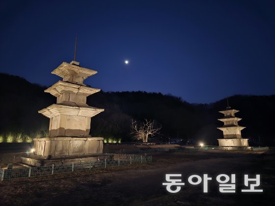 감은사지를 돌다보니 해가 완전히 지고 보름달이 떠올랐다. 감은사지 3층 석탑에는 자정까지 조명이 비추고 있어 한밤중에도 제법 운치가 있다. 두 개의 탑 위로 보름달이 떠오르니 말 그대로 ‘신라의 달밤’의 정취가 물씬 풍긴다.