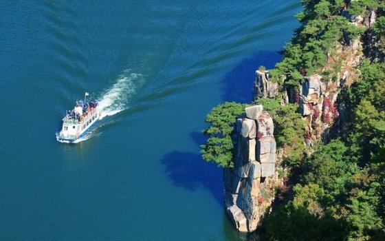 산막이옛길 괴산호 유람선.(자료사진) / 뉴스1괴산군 관계자는 “순환형 생태휴양길, 백두대간 휴양관광벨트 조성사업 등의 체험·체류형 관광콘텐츠로 한때 100만~150만명이 찾던 산막이옛길의 명성을 되찾겠다”고 말했다.