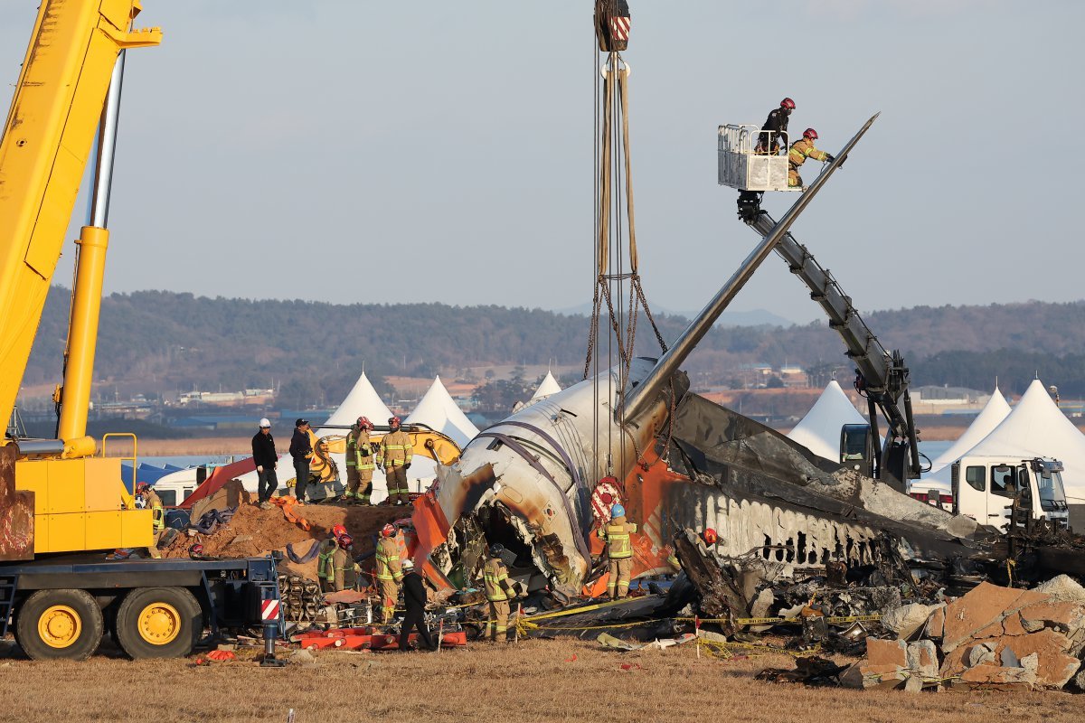 제주항공 여객기 참사 엿새째인 3일 오후 전남 무안국제공항 참사 현장에서 사고 여객기 인양 작업을 하고 있다. 2025.1.3/뉴스1 ⓒ News1 김진환 기자