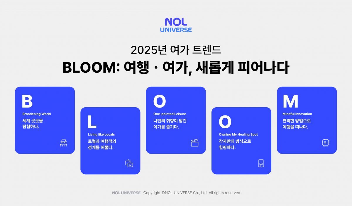 놀유니버스가 발표한 2025년 여행·여가 시장 트렌드 키워드 ‘BLOOM’.(놀유니버스 제공)